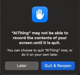 A popup will appear asking for permission to allow AI Thing to record the screen and audio: